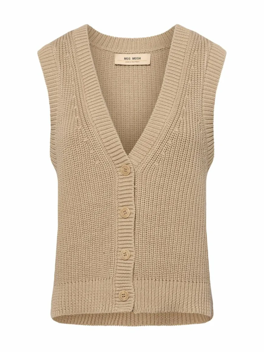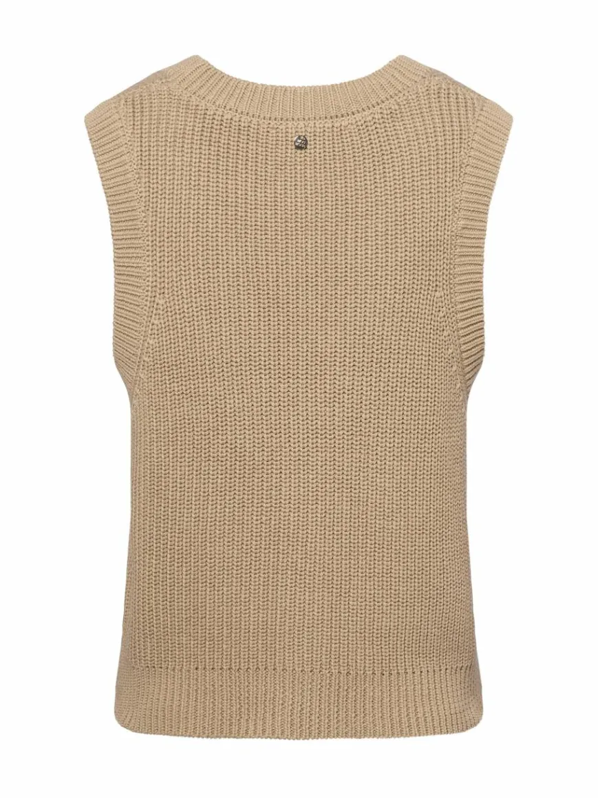 Die Strickweste aus reiner Baumwolle mit V-Ausschnitt und Knopfleiste ist ein wärmendes Upgrade für den Look – perfekt über Shirts, Blusen oder leichten Pullis.