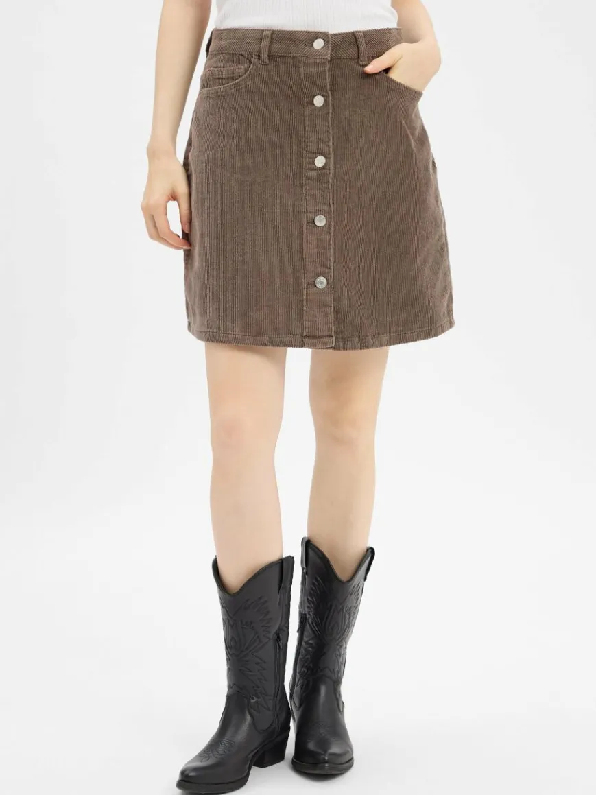 Der Cordrock NMRonnie von Noisy May zeigt sich in A-Linie mit durchgehender Knopfleiste und angesagter Mini-Länge.
