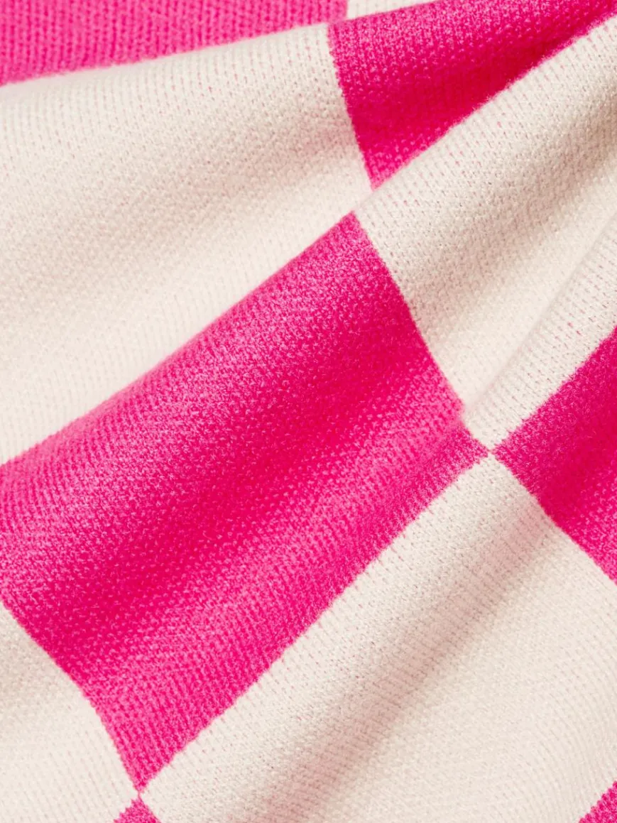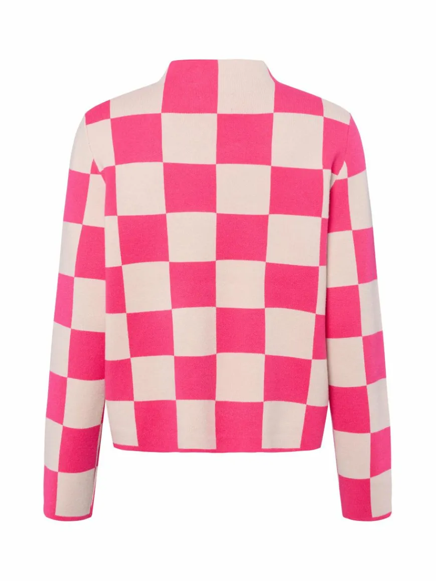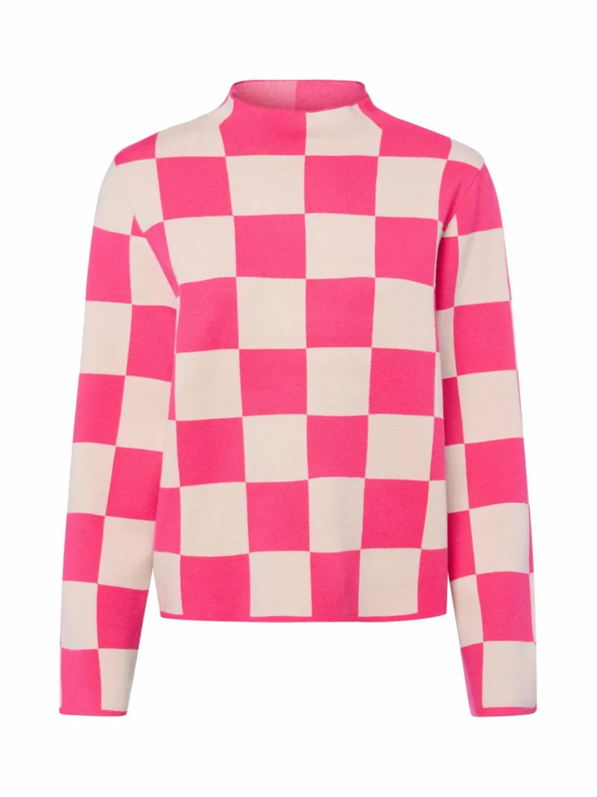 Im Schachbrett-Muster und mit fester, aber weicher Viskose-Qualität überzeugt der Strickpullover NUCiri von Nümph als echtes Statement-Piece für die Freizeit.