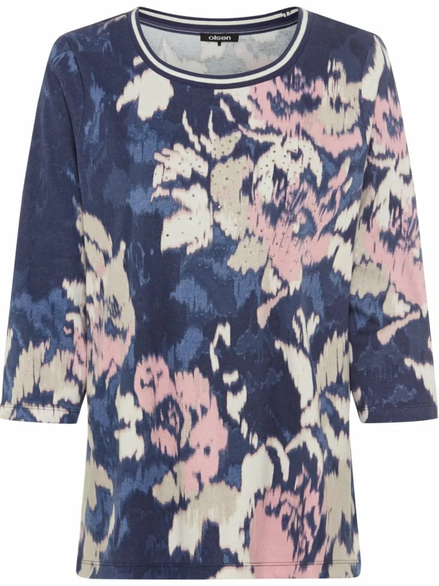 Dezent schimmernde Ziersteine akzentuieren das abstrakt gemusterte Longsleeve Hannah von Olsen aus reiner Baumwolle.