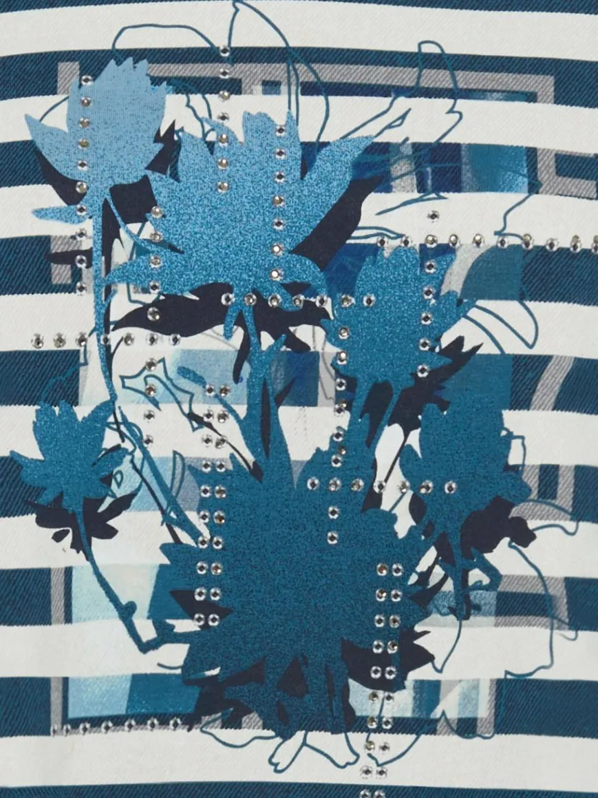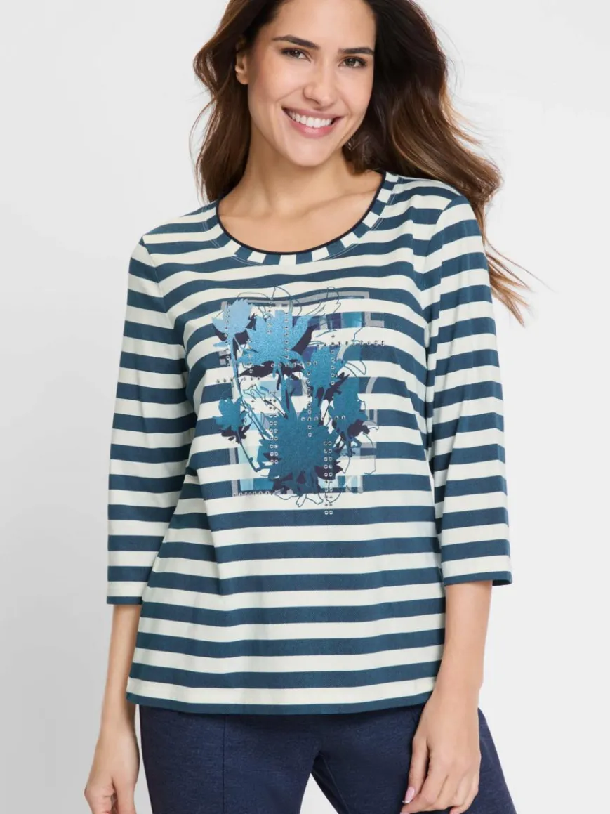 Das gestreifte T-Shirt Hannah von Olsen begeistert aus Baumwoll-Jersey mit modernem Frontprint und funkelnden Strasssteinen als feminines Keypiece.