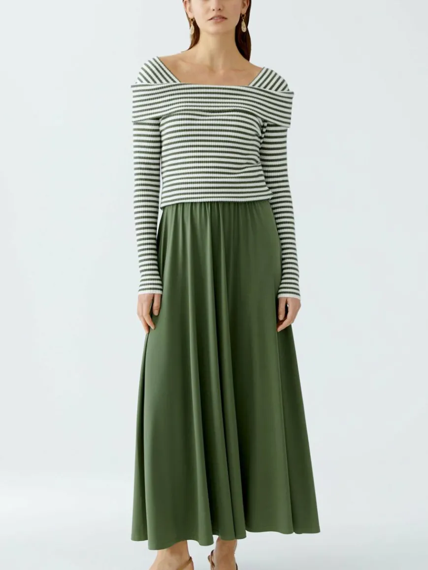 Schwingender Maxirock mit komfortablem, breitem Gummibund in der Taille