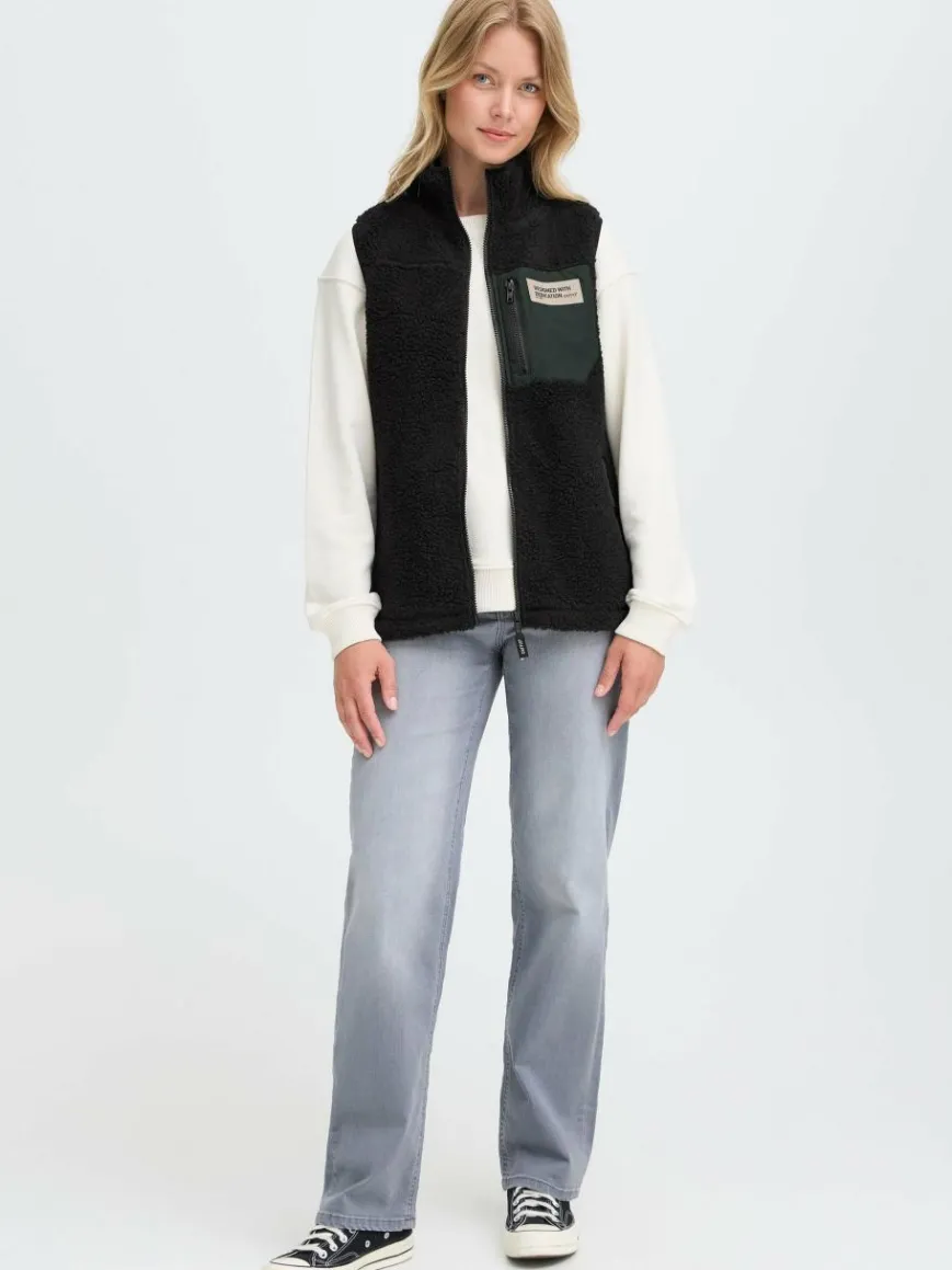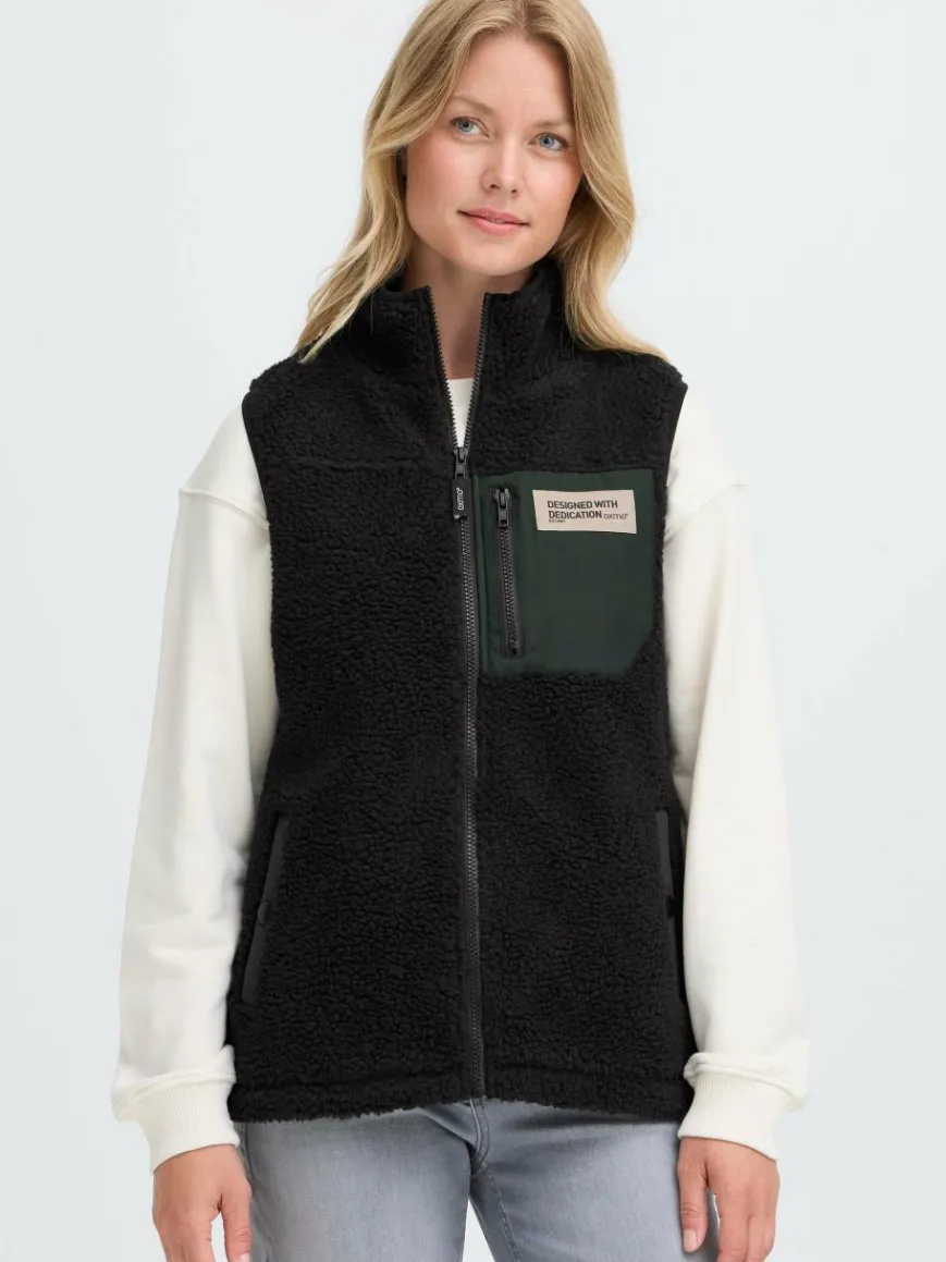 OXMO Jacken & Westen*Damen Plüschweste – OXABBY schwarz uni