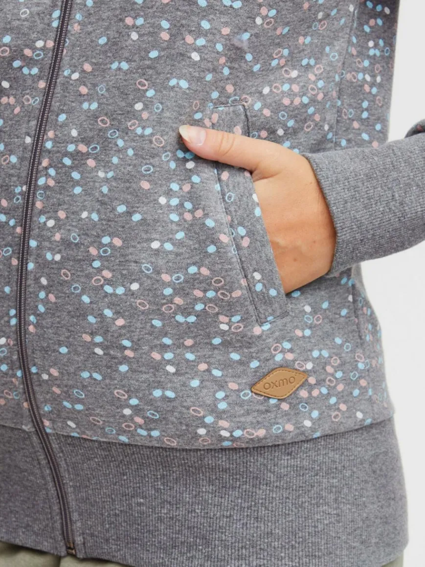 OXMO Sweatshirts & Sweatjacken*Damen Sweatjacke – OXBeatrice grau gepunktet