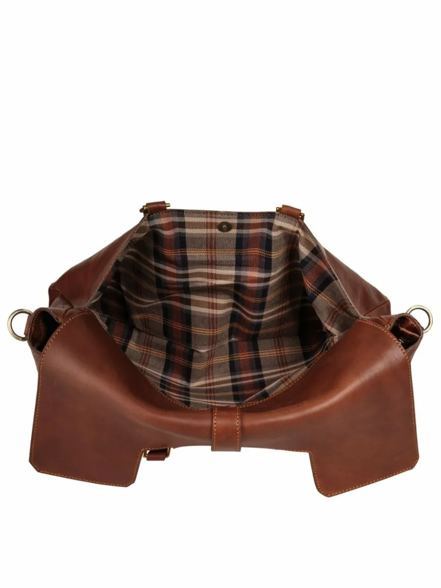 Die italienische Leder Reisetasche von piké überzeugt durch traditionell vegetabil gegerbtes Rindleder und zeitloses Design. Das robuste Material hält Reisestrapazen stand und verspricht lange Haltbarkeit. Die Tasche bietet ein geräumiges Hauptfach mit Reißverschluss, Steckfächer für Wertsachen und ein verschließbares Rückfach. Dank verstellbarem Schultergurt und Henkeln ist sie vielseitig tragbar. Made in Italy, Maße: 37x49x13 cm.
