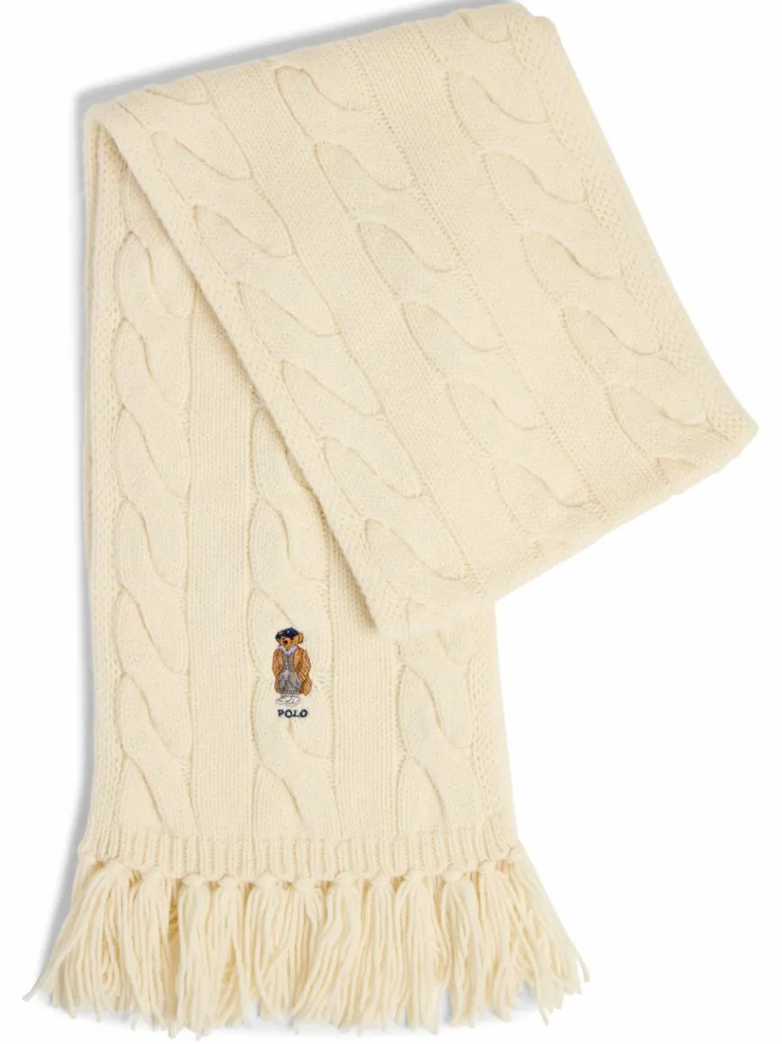 Der Polo Ralph Lauren Strickschal hält dank des Wollanteils schön warm und bewährt sich mit seinen Fransen als cozy Outdoor-Begleiter.