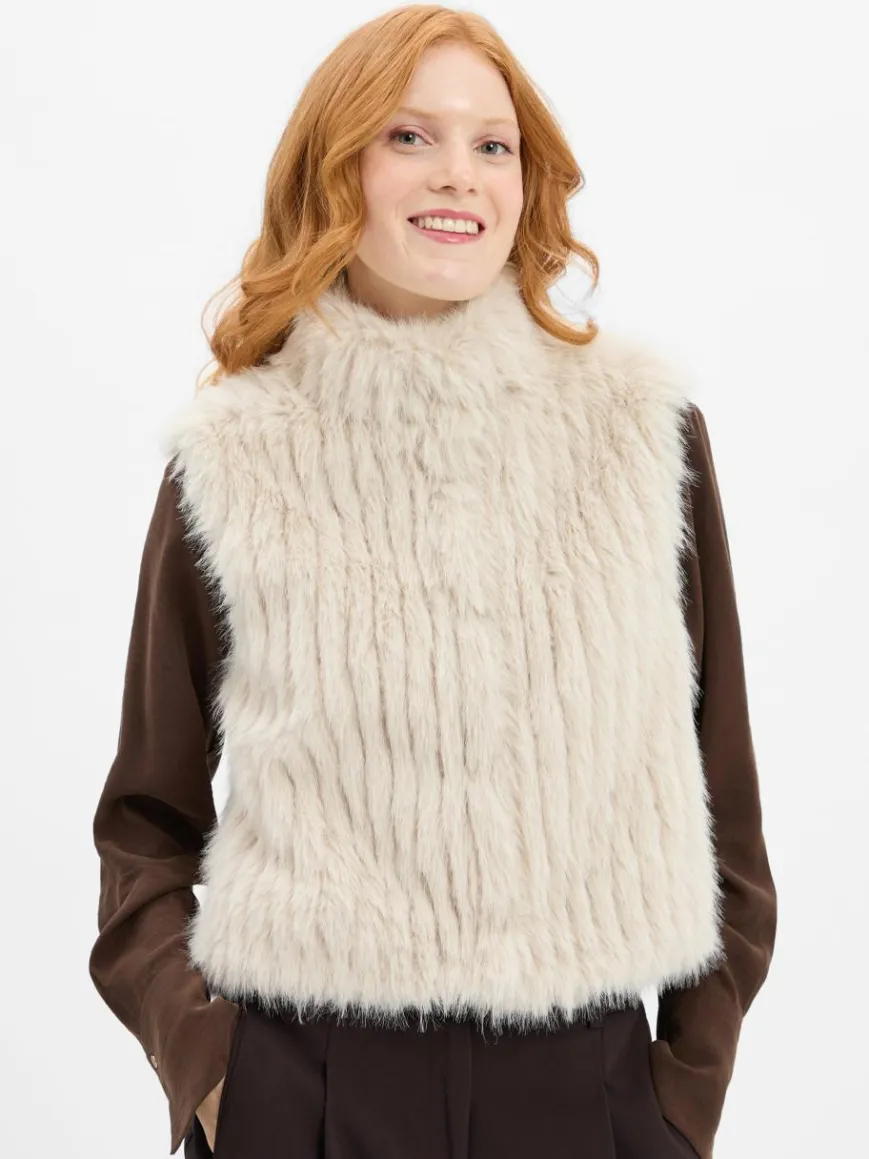 Die Rino & Pelle Weste Dava setzt sich mit ihrer kuscheligen Kunstfell-Optik trendbewusst in Szene und harmoniert perfekt mit Basic-Pieces.