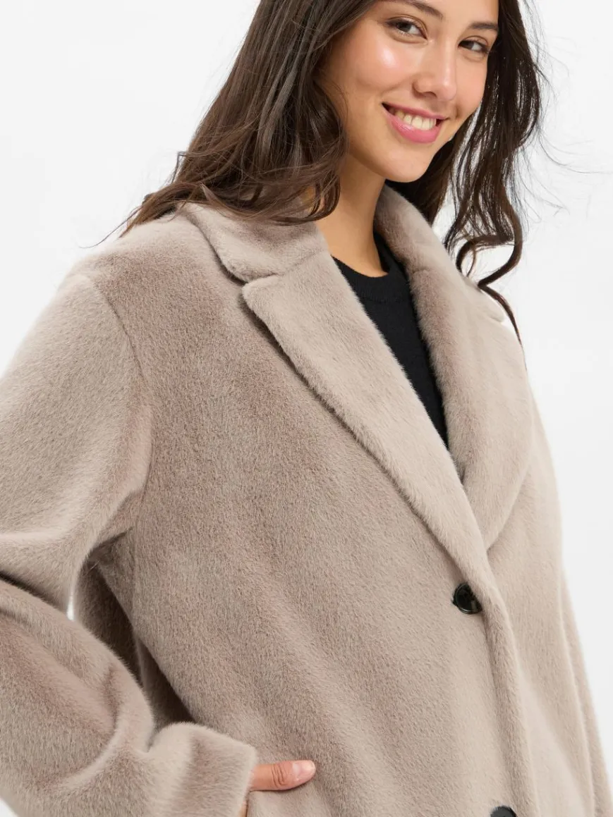 Die Jacke von Rofa aus kuscheligem Fake Fur ist ein modischer Allrounder, der sich sowohl lässig als auch elegant stylen lässt.