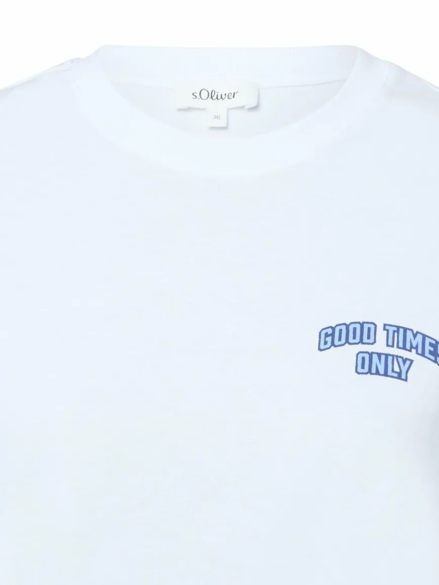 Der Front- und Backprint zaubert aus dem s.Oliver T-Shirt im Basic-Stil einen coolen Hingucker, der jeden Denim-Look optimal komplettiert.