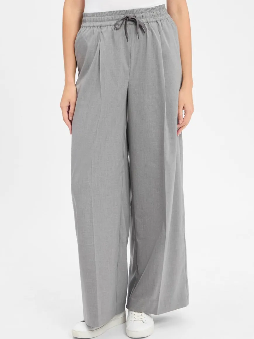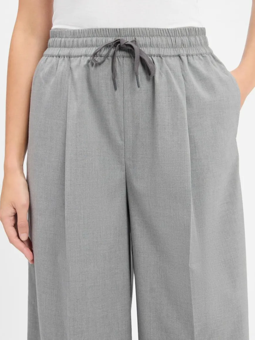 Die Samsoe Samsoe Hose Sarila erhält durch Bund- und Bügelfalten sowie die Leistengesäßtasche einen klassischen Look, während der elastische Tunnelzugbund ein komfortables Finish schenkt.