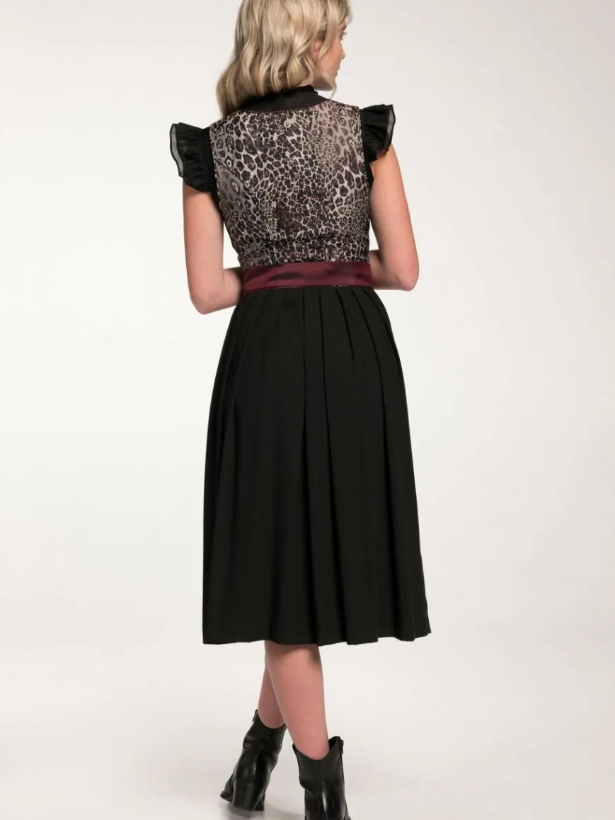Im modernen Design erscheint das Dirndl ‚Gälin‘ von Spieth & Wensky. Optisches Highlight ist zweifellos das aufregende Leoparden-Muster des Kleides, das für einen selbstbewussten und stilsicheren Auftritt sorgt. Farblich dazu abgestimmt ist der 70 cm lange Rock mit seiner eleganten Schürze, ergänzt durch die schöne und verspielte Schleife. So sorgen Sie mit ‚Gälin‘ für einen einzigartigen und ästhetischen Trachtenlook.