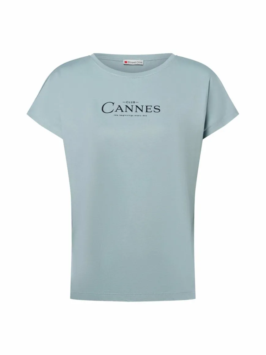 Modernes T-Shirt von Street One aus softem Baumwollmix mit extrakurzen Ärmeln und prägnantem Front-Lettering – lässig und trendbewusst.