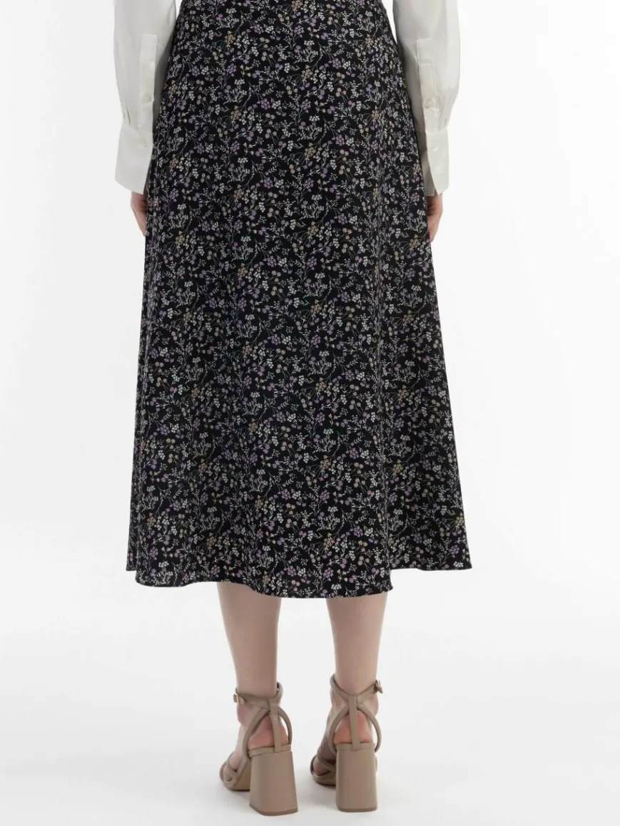 Das zarte florale Muster verleiht dem Rock von usha eine feminine Attitüde. Schmal geschnitten mit ausgestellter Passform hebt er die Romantik in den Fokus. Mit den dekorativen, stoffbezogenen Knöpfen auf der Vorderseite, ist der Rock mittig geschlitzt womit die Femininität noch unterstützt wird. Abgerundet wird das Modell durch ein geschmeidiges Innenfutter und einen seitlichen Reißverschluss.