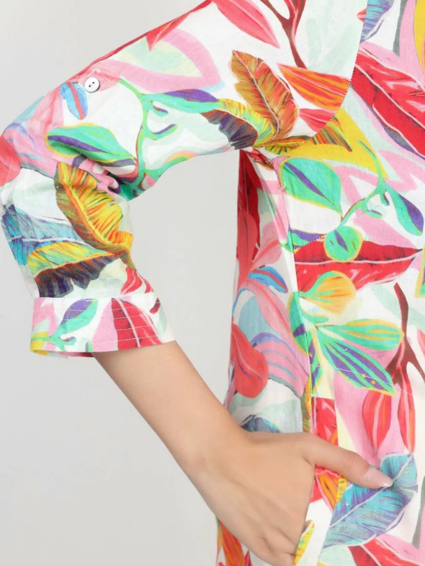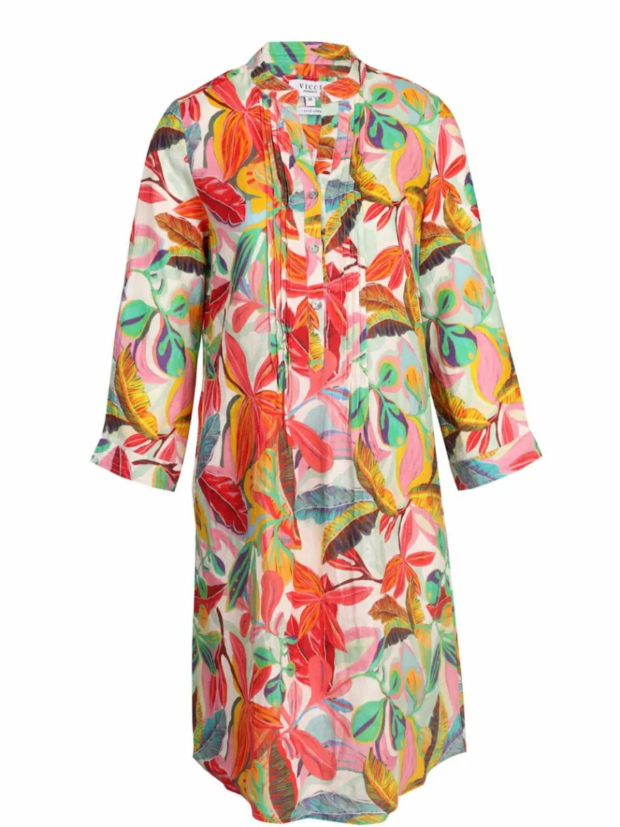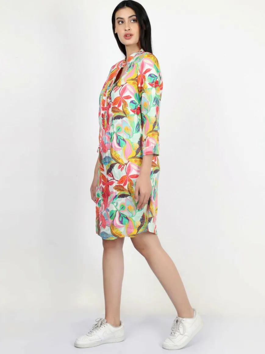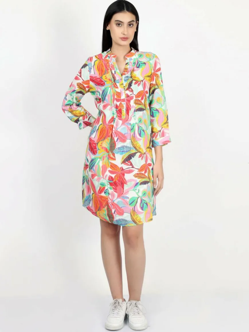 - Tunikakleid mit mehrfarbigem Blumendruck